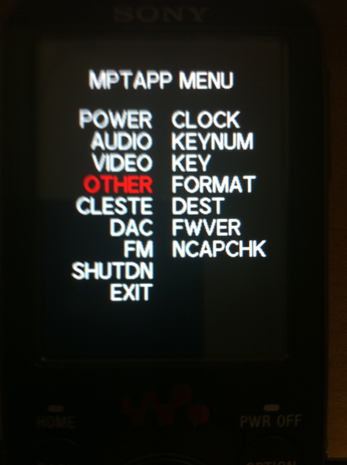 pour les walkmans NWZ-X1050/X1051/X1060/X1061, je ne possède pas ces walkmans donc je ne peux pas tester mais vous pouvez entrer ou sortir du mode de test pour bidouiller les réglages (à vos risques et périls 🙂 )